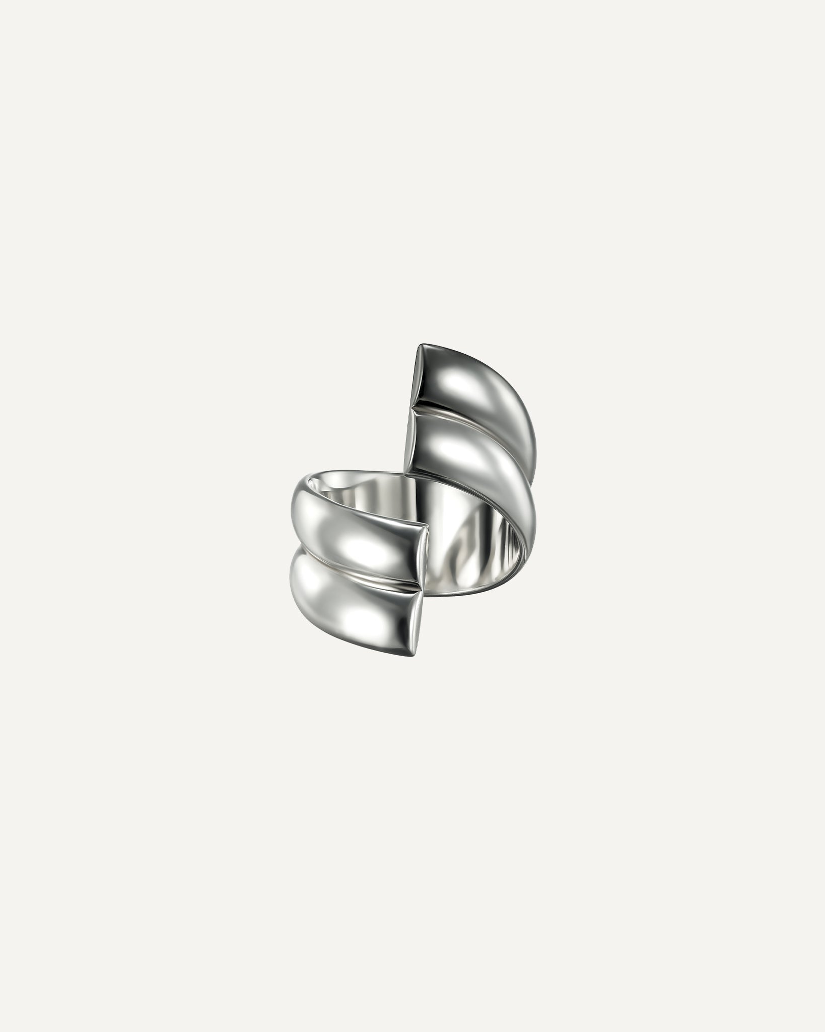 The Flow Ring is crafted from sterling silver, featuring a soft sculptural form that wraps gently around the finger.
